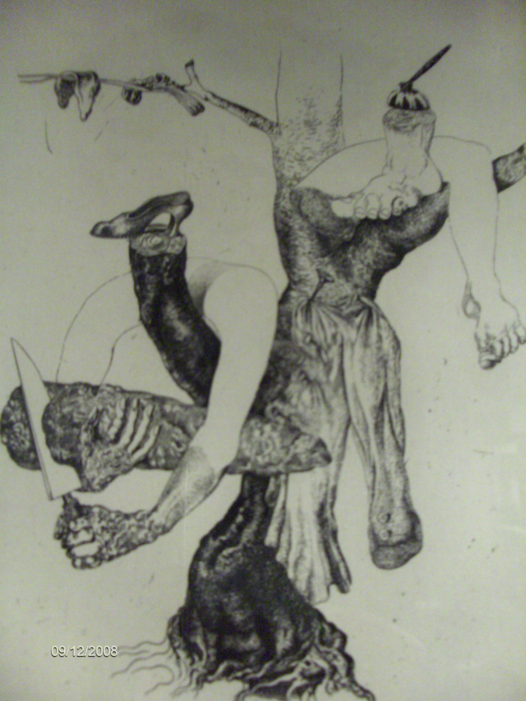ΜΠΙΛ Η γυναίκα μου;! Ποιος νοιάζεται γι’ αυτήν την παλιόγρια;! Αυτή νομίζει πως με τα λεφτά της θα με κουμαντάρει συνέχεια!... Αν γίνουν όλα όπως τα προσδοκώ τότε θα έχω πολύ περισσότερα απ’ τα δικά της. Όλοι τους νομίζουν πως είναι έξυπνοι μα είναι τόσο ηλίθιοι, θεέ μου! Η γυναίκα μου βέβαια έχει και κάτι που ξεχωρίζει επάνω της – πέρα από ηλίθια είναι η ασχημότερη κι η απωθητικότερη απ’ όλους! Ακόμα κι η τρελή η Σίλβια είναι ομορφότερη απ’ τη γυναίκα μου! Κι αυτή ηλίθια βέβαια – όπως κι αυτός! (Γυρνά προς τον νεκρό) Καλά έκανα και πήγαινα με την κόρη τους! Εσύ όμως (στην αιχμάλωτη) δε μοιάζεις καθόλου με όλους τους άλλους! Μου έχεις φέρει πυρετό! (Η φιγούρα στο δωμάτιο δεξιά κινείται βραχυκυκλωμένη. Υψώνει τα χέρια της πάνω απ’ το κεφάλι της σαν να υποκύπτει σε κάτι τελετουργικό, αδράχνει στη συνέχεια με τα χέρια της το κεφάλι της, προχωρεί αργά, παρακινημένη από κάτι ισχυρό προς την πόρτα.) Πρόσεξε, στις δώδεκα τα μεσάνυχτα θα φύγουμε απ’ το αεροδρόμιο! Έχω κλείσει ήδη τα εισιτήρια! Θα κάνεις ότι δε με γνωρίζεις μέχρι να σου πω! – Πάρε για την ώρα αυτά τα χρήματα, μπορεί να σου χρειαστούν!