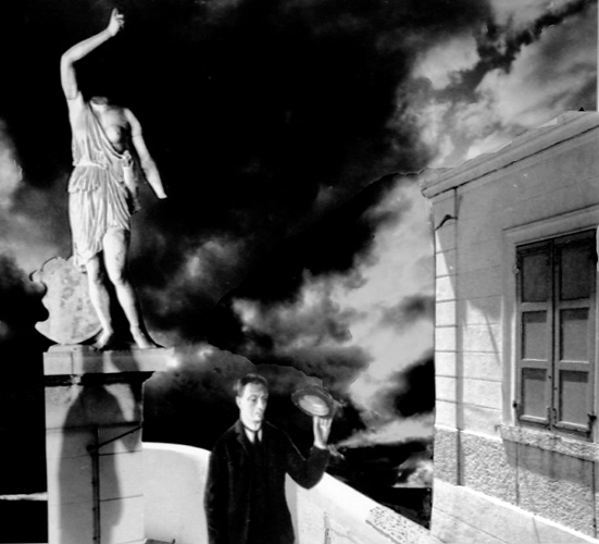 (Βγαίνουν με τους κρατούμενους. Βήματα στις σκάλες. Ο άντρας στέκεται σοβαρός σε στάση προσοχής, σαν να υπακούει σε μια ανώτερη αποστολή εντός του. Για μια στιγμή κοιτάζει το κοινό. Ακούγεται από μέσα ένα επαναστατικό εμβατήριο. Η Διεθνής; Πέφτει η αυλαία.)